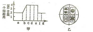 5、选择题 下面甲图表示洋葱根尖生长点连续分裂的细胞在各个时期细胞核内DNA含量的测定结果;乙图是某同学所观察到的图像。欲将乙图视野中处于甲图a时期的细胞移至视野中央进行观察,装片正确的移动方向应是移向