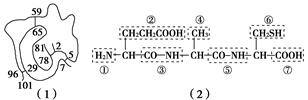 3、选择题 图(1)为某蛋白质结构示意图,图(2)为由该蛋白质切下的某一片段,试判断下列有关叙述不正确的是
