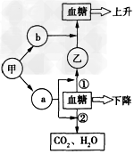 4、选择题 下图是血糖调节的部分过程图解。甲、乙表示器官,a、b表示相应激素。下列说法中正确的是
