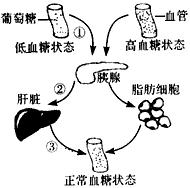 (1)当机体处于低血糖状态时,如果机体通过途径①→②→③使血糖水平恢复正常,其主要机理是______分泌增多,促进了__________分解成葡萄糖,使血糖水平升高。