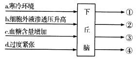 D.由d引起,下丘脑分泌④促甲状腺激素,最后使甲状腺激素分泌增加