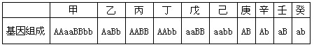 3、填空题 以基因型为AaBb(两对基因分别位于两对同源染色体上)雄性成熟小白鼠的某器官为实验材料,研究细胞分裂并观察、分析细胞的基因组成,该器官中细胞的基因组成有以下几种类型:(假定没有基因突变和交叉互换)。