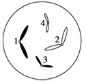 1、选择题 如图所示为某动物卵原细胞中染色体组成情况,该卵原细胞经减数分裂产生3个极体和1个卵细胞,其中一个极体的染色体组成是1、3,则卵细胞中染色体组成是
