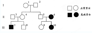 本题解析:试题分析:根据题意和图示分析可知:由于6号、7号、10号患病,所以基因型都为aa。因3号和4号都正常而7号患病,所以3号和4号都是Aa;因此,8号的基因型为AA或Aa。由于患病,所以9号的基因型为Aa。所以在第Ⅲ代个体中,基因型不能确定的是8号,基因型为AA或Aa。