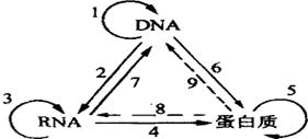 1、选择题 下图为生物遗传信息在三种生物大分子之间的流动示意图。