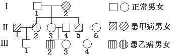 4、选择题 关于右侧家系图中甲、乙两种遗传病,正确的叙述是