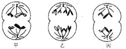 本题解析:从图可知,细胞内染色体均向两极移动,为后期图,甲图中移向一极的染色体无同源有单体,且细胞质均分,为雄性动物减数第一次分裂后期图,乙中移向一极的染色体无单体有同源为有丝分裂后期图,丙图中移向一极的染色体无同源无单体为减数第二次分裂后期图,根据减数第一次分裂特点可知A选项正确。