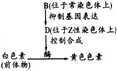 (3)现有基因型不同的两个结白茧的雌雄蛾杂交,产生了足够多的子代;子代中结白茧蛾与结黄茧蛾的比例是3:1。这两个亲本的基因型可能是BbZDZD×BbZDW,还可能是______________。