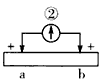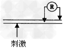 1、选择题 下列①②③④四图为在蛙的坐骨神经上测定膜电位的装置。如在a处的左侧给予一较强刺激,下列能正确表示神经冲动传至b处的测定结果的是