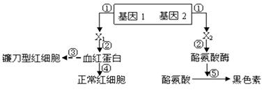 4、选择题 下图表示人体内基因对性状的控制过程。据图分析,有关叙述不正确的是