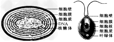 3、连线题 下图分别是蓝藻(左图)和衣藻(右图)的结构模式图。请据图回答: