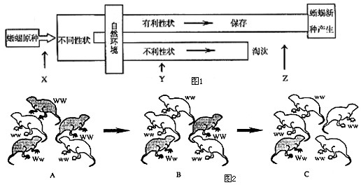 (1)图1表示某小岛上蜥蜴进化的基本过程,X、Y、Z表示生物进化中的基本环节。X、Y分别是____________、____________。