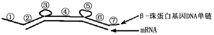 (1)上述分子杂交的原理是_________;细胞中β-珠蛋白基因编码区不能翻译的序列是________(填写图中序号)。
