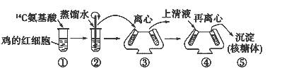 4、选择题 下图表示从鸡的血液中制备核糖体的大致过程,对该过程的叙述,不正确的是( )