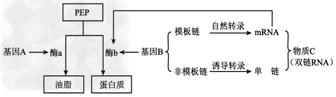 (2)据图可知,油菜含油量提高的原因是___________的形成,抑制了酶b合成中的______过程。