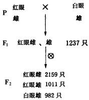 2、选择题 1905年,E. B. Winlson发现,果蝇的雌性个体有两条相同的X染色体,雄性个体有两个异型的性染色体,其中一条与雌性个体的性染色体不同,称之为Y染色体。1909年,摩尔根从他们自己培养的红眼果蝇中发现了第一个他称为“例外”的白眼雄蝇。将这只白眼雄蝇和它的红眼正常姊妹杂交,结果如下图所示(注:不同类型的配子及不同基因型的个体生活力均相同):在F2中,白眼果蝇均为雄性,这是孟德尔的理论不能解释的,请你参考E. B. Winlson的发现,替摩尔根提出合理的假设
