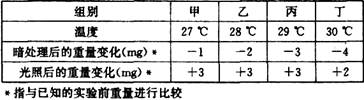 2、选择题 用某种大小相似的绿色植物叶片,分组进行实验:已知实验前叶片的重量,在不同温度下分别对叶片暗处理1小时,测其重量变化;接着再光照1小时(光照强度相同),再测其重量变化,得到下表结果: