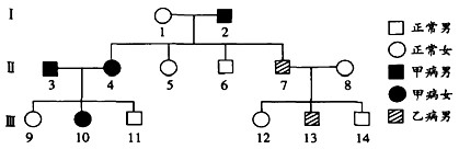 (3)假如Ⅲ-10和Ⅲ-13结婚,生育的孩子患甲病的概率是________,患乙病的概率是__________,不患病的概率是________。
