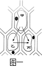 2、选择题 图一是三个相邻的植物细胞,以及它们之间水分流动方向的示意图。