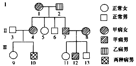 A.甲病的遗传方式属于常染色体显性遗传