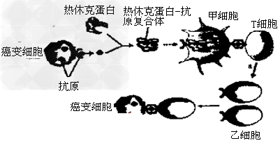 (4)当细胞癌变时,会产生正常细胞原本不具有的蛋白质,它可引发免疫反应,在此过程中,热休克蛋白参与了识别作用(见下图)。
