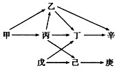D.既存在竞争关系又有捕食关系的只有丁和辛