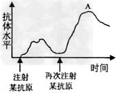 5、选择题 将某抗原先后两次注射到同一个小鼠体内,其体内抗体水平的变化如下图所示。下列叙述中不正确的是