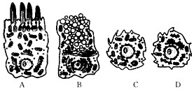 (3)与所有上皮细胞一样,呼吸道上皮细胞也在不断衰老、脱落,并被底部向上推进的新细胞所代替。A、B、C、D细胞中,分化程度相对较低的是__________(填字母)细胞。细胞C、D中,______________(填字母)细胞最可能分化为黏液腺细胞。