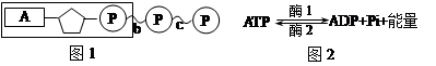 A.图1中字母A代表的是腺苷,b、c为高能磷酸键