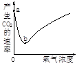 4、选择题 下图表示大气中氧的浓度对苹果果实产生CO2的影响,下列说法错误的是