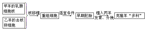 A.克隆羊“多利”的主要性状与甲羊一致,因其细胞核基因来自甲羊