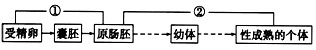 A.图中①过程表示胚胎发育,②过程表示胚后发育