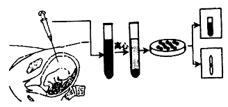 5、连线题 产前诊断是优生学的主要措施之一,其中的羊水检查是针对孕妇进行的一种检查手段,主要检查羊水和羊水中胎儿脱落的细胞。检查项目包括细胞培养、染色体核型分析和羊水生化检查等,以确定胎儿成熟程度和健康状况,并诊断胎儿是否患有某些遗传病。下图是羊水检查的主要过程,请据图回答下列问题: