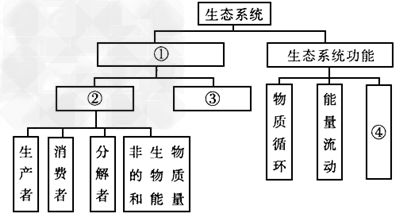 4、选择题 下图是有关生态系统的概念图,其中①②③④分别是