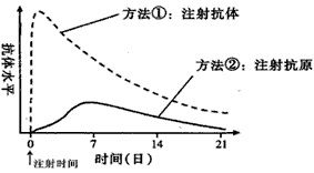 4、选择题 下图中的曲线显示了两种使人体获得免疫力的方法。据此判断下列说法正确的是
