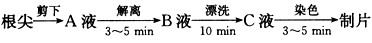 3、选择题 制作洋葱根尖有丝分裂临时装片的过程包括