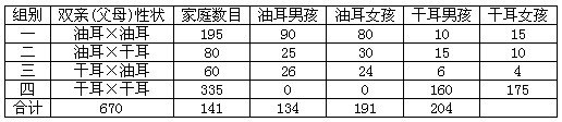 5、选择题 人的耳垢有油性和干性受单基因(A、a)控制。有人对某一社区的家庭进行了调查,结果如下表。下列分析错误的是