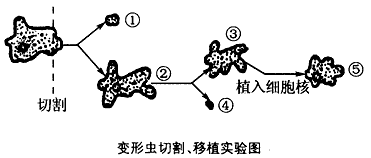 2、连线题 将变形虫进行切割、移植实验如下图,分析回答: