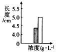 5、选择题 用打孔器取同一萝卜5cm长的直条分成4组,其中3组分别置于;20g/L、60g/L、80g/LKNO3溶液中,测量结果如下图,预计在40g/LKNO3溶液中的测量结果最可能是