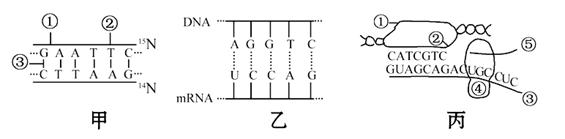 A.甲图DNA放在含15N培养液中复制2代,子代含15N的DNA单链占总链的7/8,丙图中①的碱基排列顺序与③不相同