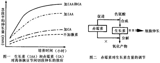 4、连线题 研究发现生长素(IAA)和赤霉素(GA)对胚鞘、茎枝切段等离体器官均有促进生长的作用。