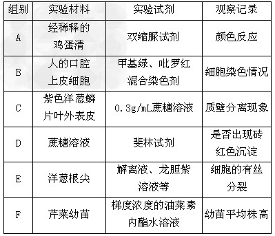 (1)A-F六组实验中需要使用光学显微镜的是_________。使用高倍显微镜观察的步骤和要点是:①.先用低倍镜找到要观察的物像,移到视野的___________;②.转动转换器换上高倍物镜,调节___