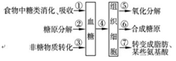 选择题 下列有关糖代谢及调节的叙述,正确的是A.②过程可发生在肝脏细胞中和肌肉细胞中B.胰岛B细胞分泌的激素抑制①③过程C.胰岛A细胞分泌的激素促进④过程D.胰岛素促进④⑤⑥⑦等过程,过程⑦形成的氨基酸只能是非必须氨基酸