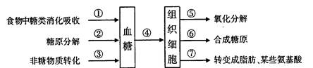 选择题 下列有关人体糖代谢及调节的叙述.正确的是A.在人体所有细胞中,②过程均可发生B.①过程发生后,胰高血糖素随即升高C.胰岛素能促进靶细胞完成②和③过程D.胰岛 B细胞分泌的激素能促进⑤过程