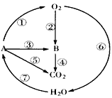 5、选择题 下图为物质循环简图,A为生产者,B为消费者。下列叙述错误的是