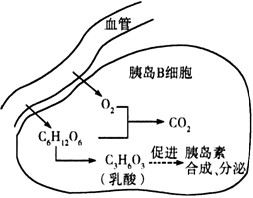 1、选择题 如下图所示,人体胰岛素的合成、分泌与细胞内乳酸的含量有密切关系。下列有关分析错误的是