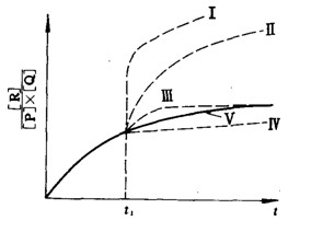 3、选择题 有一种酶催化反应P+Q→R,右图中的实线表示没有酶时此反应的进程。在t1时,将催化此反应的酶加入反应混合物中。下图中的哪条线能表示此反应的真实进程(图中[P]、[Q]和[R]分别代表化合物P、Q和R的浓度)