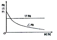 4、选择题 甲、乙两种酶用X蛋白酶处理,酶活性与处理时间的关系如右图所示。下列分析错误的是