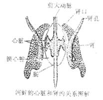本题解析:贻贝属瓣鳃纲动物。瓣鳃纲的排泄器官为一对“V”形肾(又称鲍氏器),一端围心腔孔(或称肾口)通围心腔,一端以肾门(或称肾孔)开口在内鳃的鳃上腔。如下图: