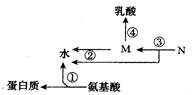 5、选择题 如图表示人体内氢元素随化合物代谢转移过程,下列分析合理的是